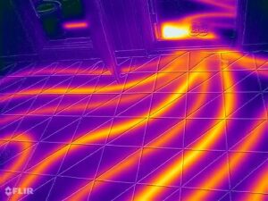온수관 누수 시 주변 온도 차이를 적외선으로 감지. 비파괴 탐지라 마감재 손상 없음